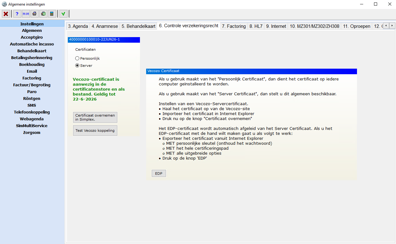 Om een COV check uit te voeren of een MZ301 bestand digitaal in te dienen heb je een Vecozo certificaat nodig.